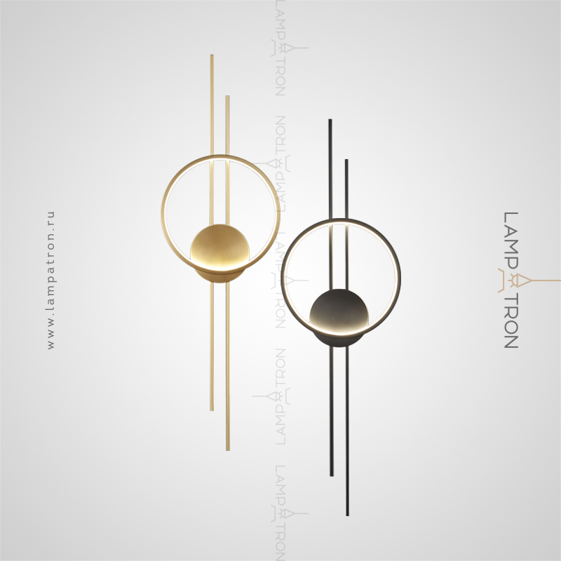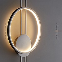 LED wall lamp in the form of a combination of a luminous ring and two rods on a round mount