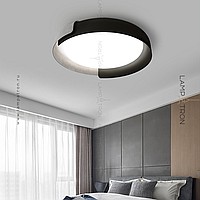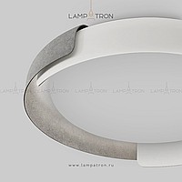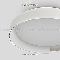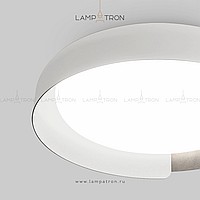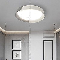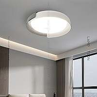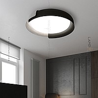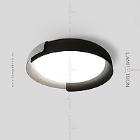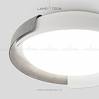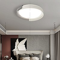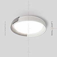 A series of ceiling LED lamps with a round LED panel in a metal case with trim under a gray stone