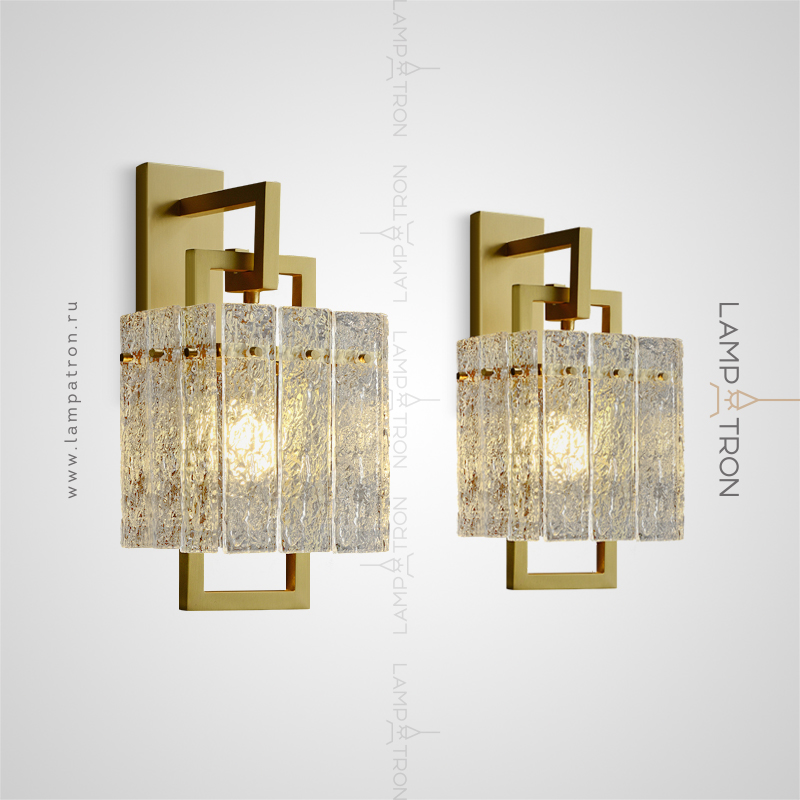 Sconces with a rectangular plafon from embossed glass plates on a metal frame bracket