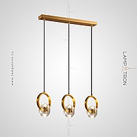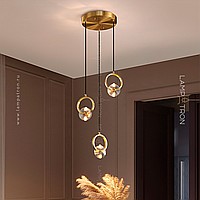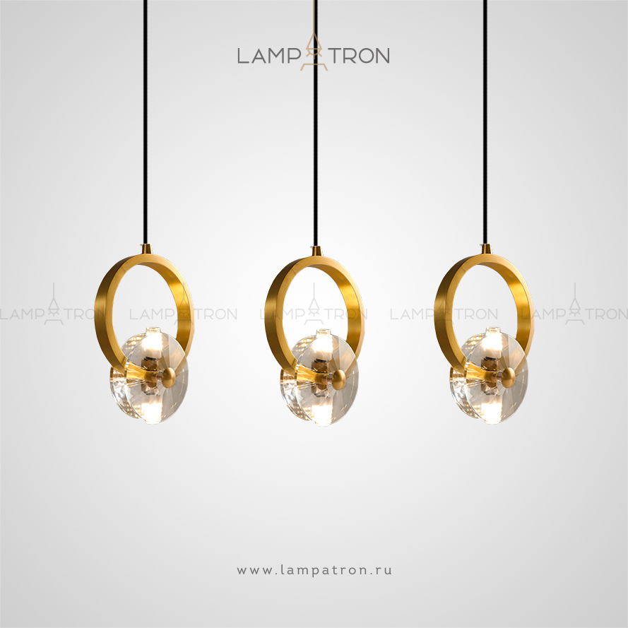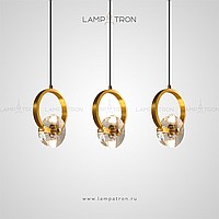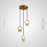 A combination of three lamps with plafones in the form of crystals on brass rings