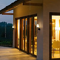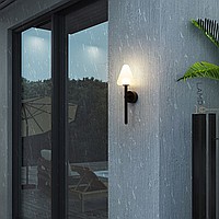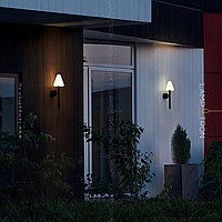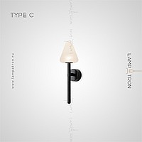 A series of wall -mounted LED lamps with white vehicles of conical shape on black mount