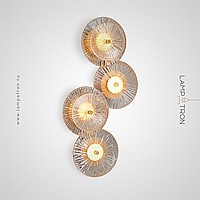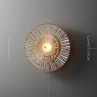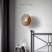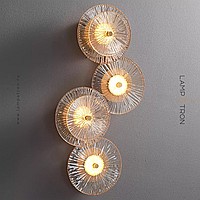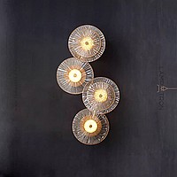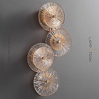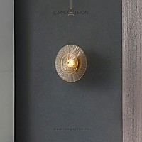 AGAPI LED wall lamp with a shade made of two embossed glass discs of two diameters.