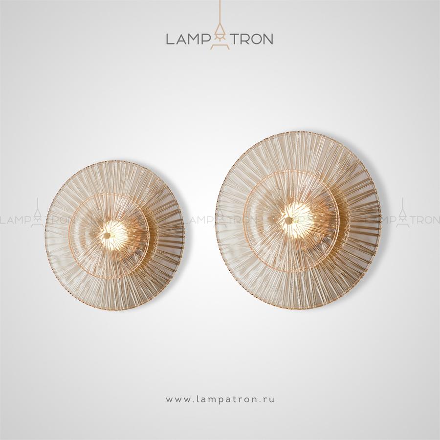 AGAPI LED wall lamp with a shade made of two embossed glass discs of two diameters.