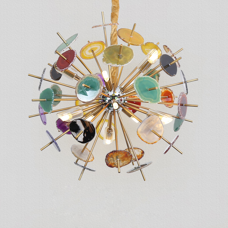 The mood of creativity with a series of chandeliers from multi -colored cuts of natural stone, each of which is unique and not repeated. Decoration of your interior as an individual continuation of your personality!
