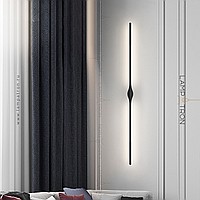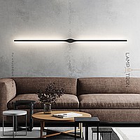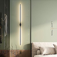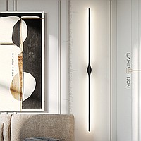 A series of wall -mounted LED lamps with black elongated plafones in the form of vertical racks with a drop -shaped mount
