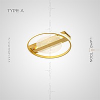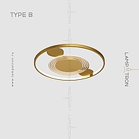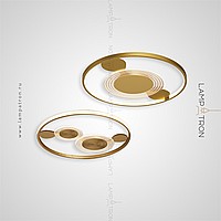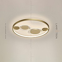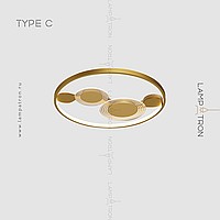 A series of ceiling LED lamps in the form of a combination of a ring with an internal LED lighting and disco-shaped dispersion with transparent plates with radial engraving