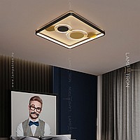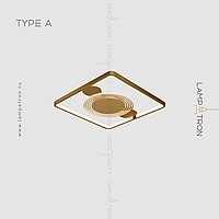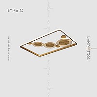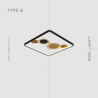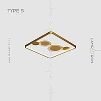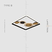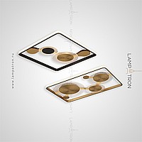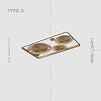 A series of ceiling LED lamps in the form of a combination of a rectangular rail with an internal LED lighting and disco-shaped dispersion with transparent plates with radial engraving