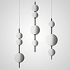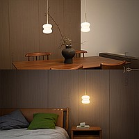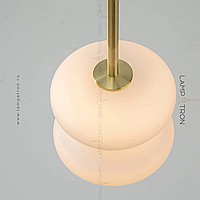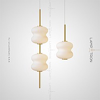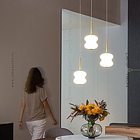 A series of suspended LED lamps with curly patterns of white jade glass