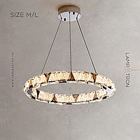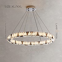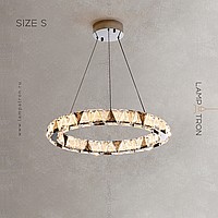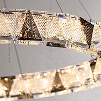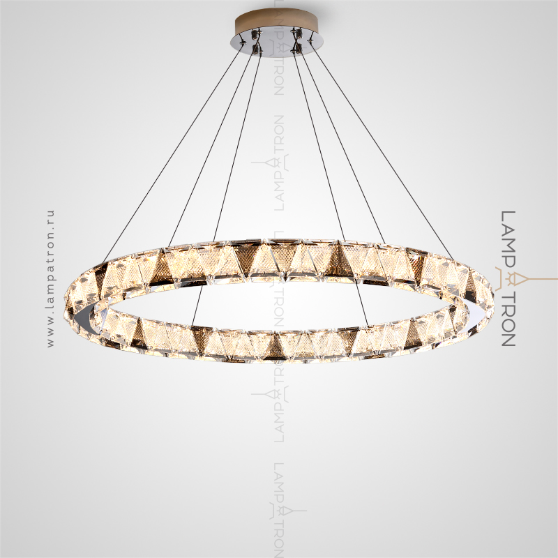 A series of ring LED chandeliers with relief crystal diffusers of triangular shape