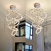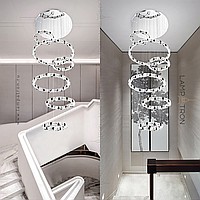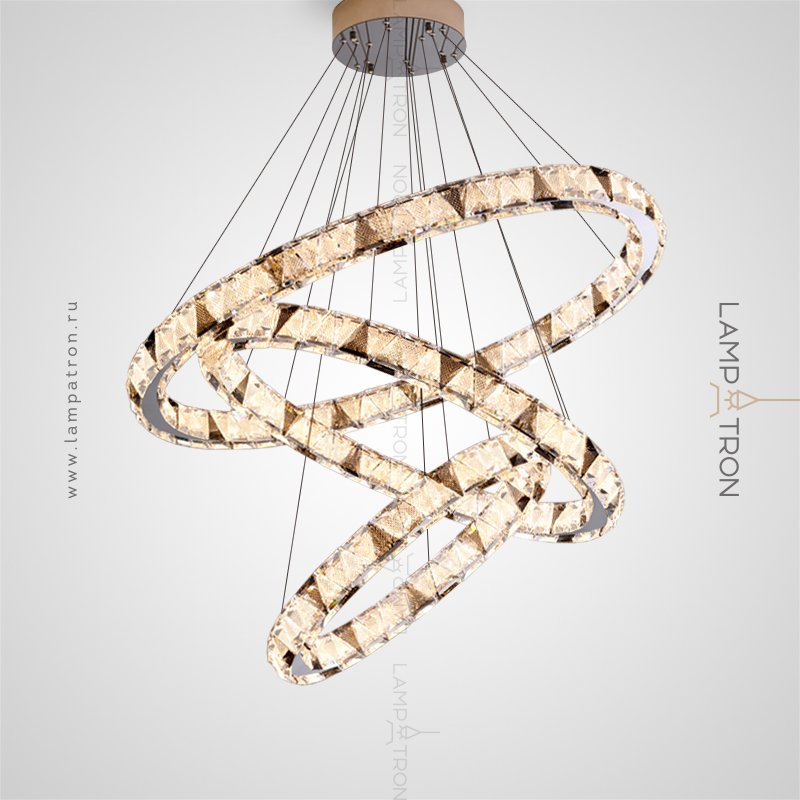 A series of LED chandeliers in the form of a combination of rings of different diameters with triangular -shaped crystal disperfielders