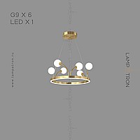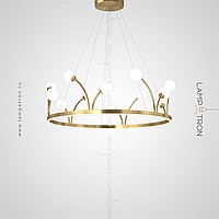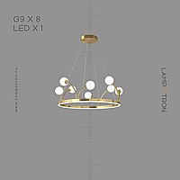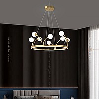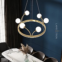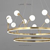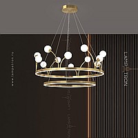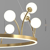 A series of chandeliers with spherical ceilings on arcuate horns and LED-browing on a ring frame