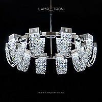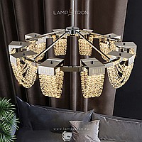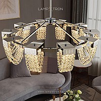 A series of LED chandeliers on a beam frame with diffusers in the form of pendants made of square crystal stones