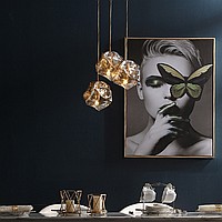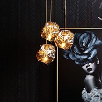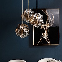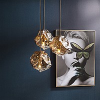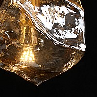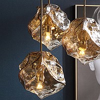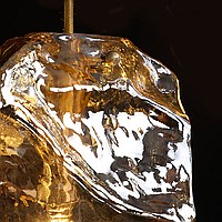Suspended lamp with a glass ceiling in the form of a melted crystal