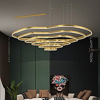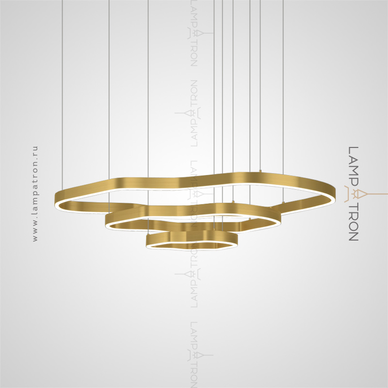 A series of ring multi -tiered chandeliers Andante with a combination of elements with a cross section in the form of topographic lines.