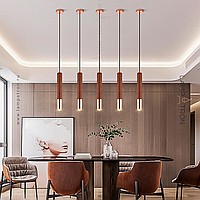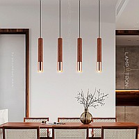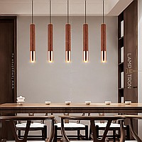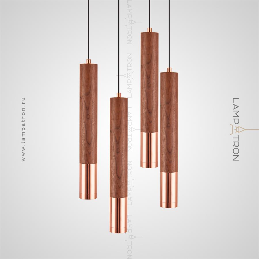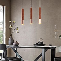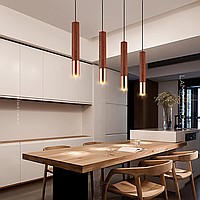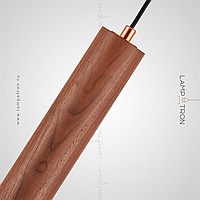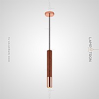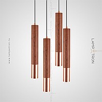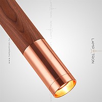 Suspended LED lamp with a cylindrical wheels of wood and a metal tip