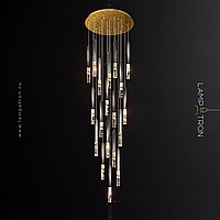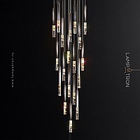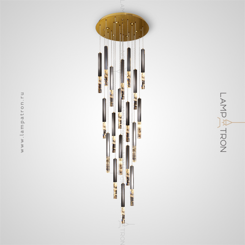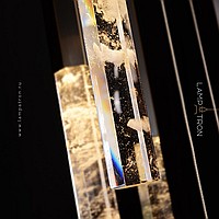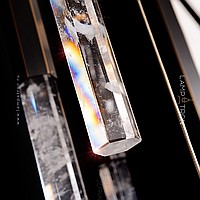 A finished combination of suspended lamps with ceiling in the form of natural crystal stones in metal holders