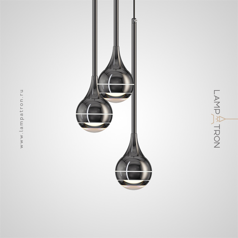 Pendant LED luminaire with elongated drop-shaped housing in black mother-of-pearl color
