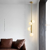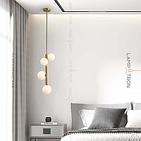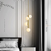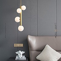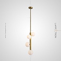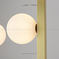 Suspended lamp with spherical glass plafins of different diameters on a rectangular rack