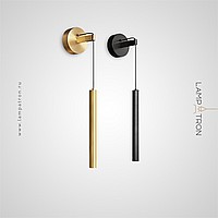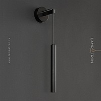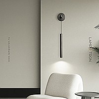 Wall-mounted LED luminaire with elongated cylindrical body on a suspension with round mount