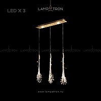A finished combination of handmade suspended lamps with a biomorphic composition of glass and a brass vine
