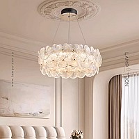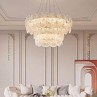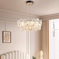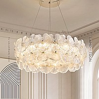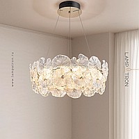 Ring LED Chandeliers Series with Handmade Glass Diffusers in the Form of Leaves