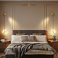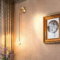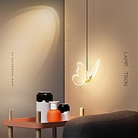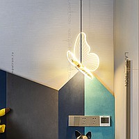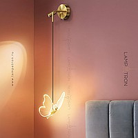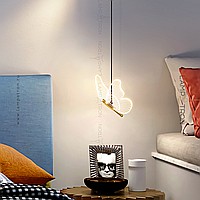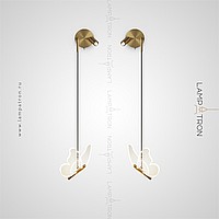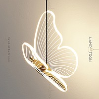 A series of LED symmetrical sconces with pendant shades stylized as butterflies with luminous wings