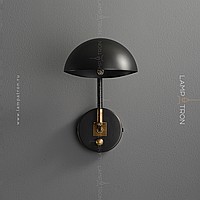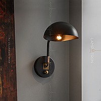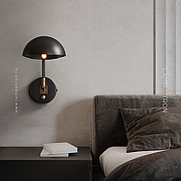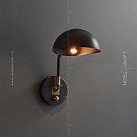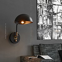 Wall lamp with a metal lampshade of the dome shape on the bracket with a round mount