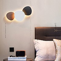 The finished combination of wall LED lamps with flat diffusers in the form of triangular metal plates
