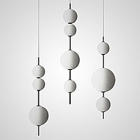 A new series of suspended lamps with combined glass lampshades of different sizes. The self -sufficient decor of each model in the form of beads can be easily supplemented by other lamps of the series, making the general style of the composition the most accent.