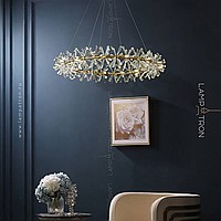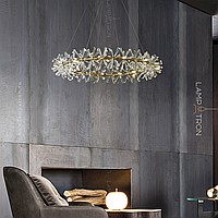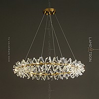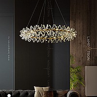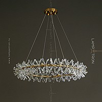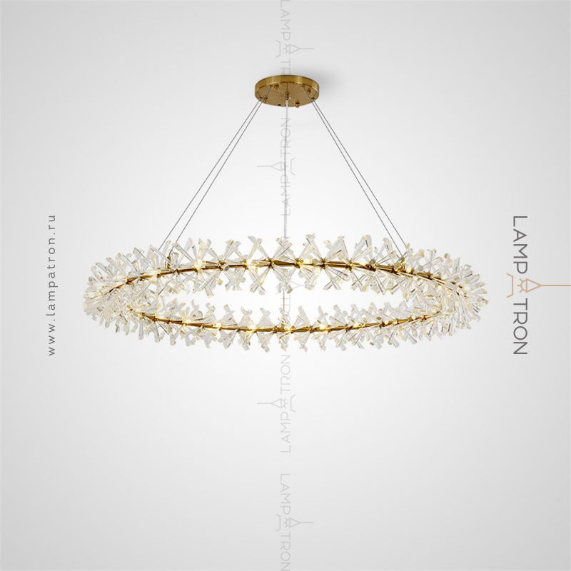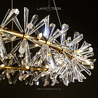 A series of ring chandeliers with a lampshade in the form of transparent bundles of natural crystal