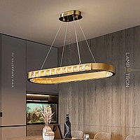 A series of rack lamps on a closed rounded frame with ceiling in the form of crystal stones with the effect of air bubbles