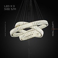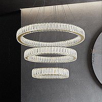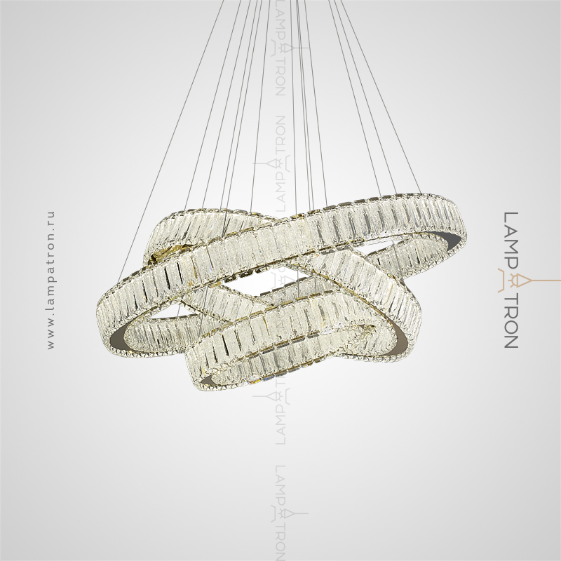 A series of LED chandeliers in the form of a combination of rings of different diameters with crystal distortion dialivors