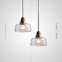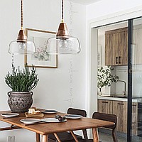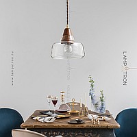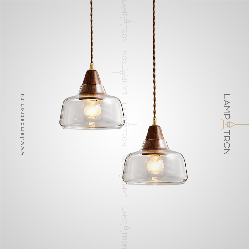 Scandinavian -style pendant lamp with a glass ceiling and a wooden element
