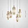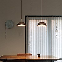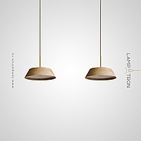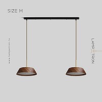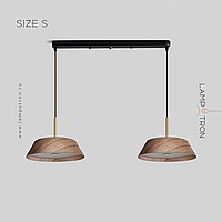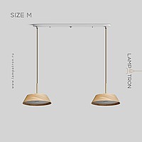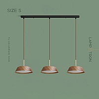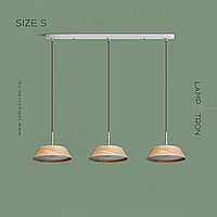 Ready-made combination of LED pendant lights with a trapezoidal body made of dark and light wood
