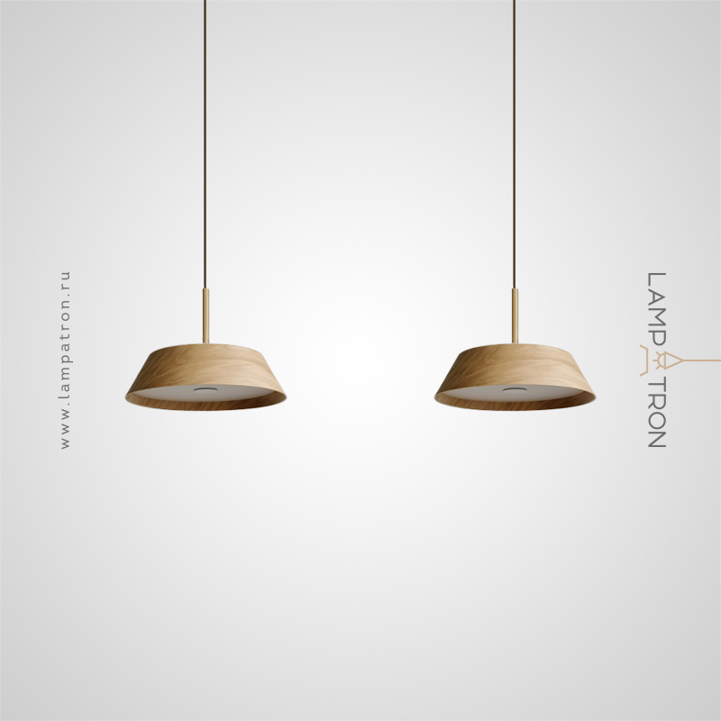 Ready-made combination of LED pendant lights with a trapezoidal body made of dark and light wood