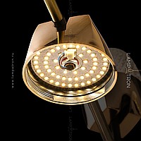 A series of LED chandeliers on a radial frame with embossed ceiling on vertical horns