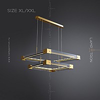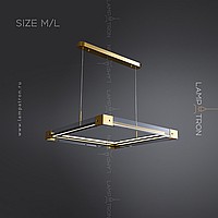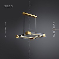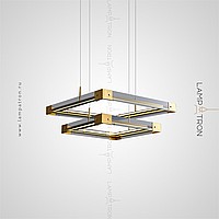 A series of LED chandeliers with a rectangular body of smoky glass with metal corners