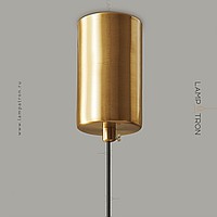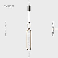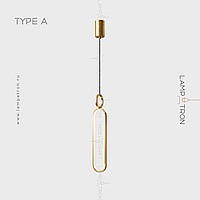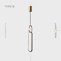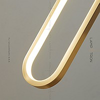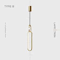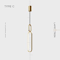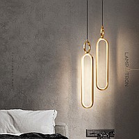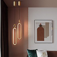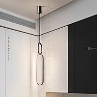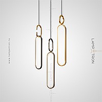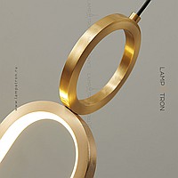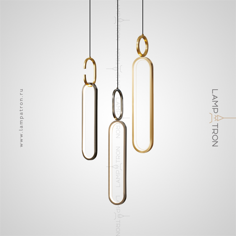 A series of suspended lamps in the form of a combination of open and elongated rings with an internal LED lighting