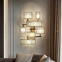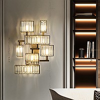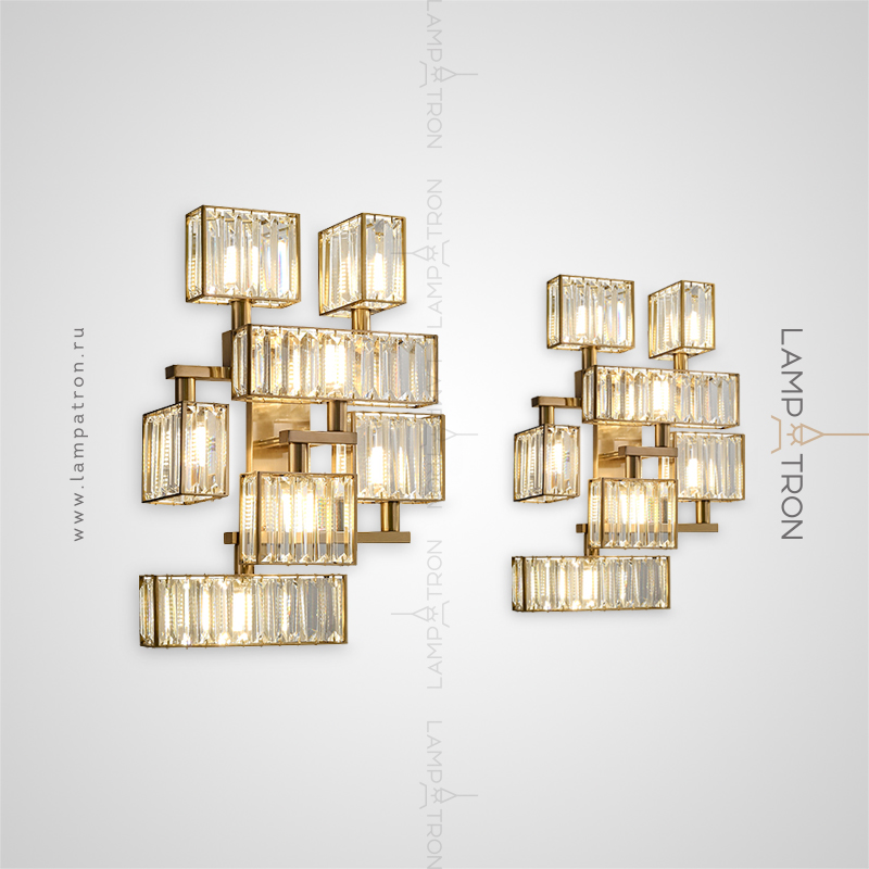 Wall lamp with multidirectional cubic ceiling from crystal rectangular plates