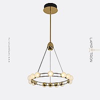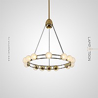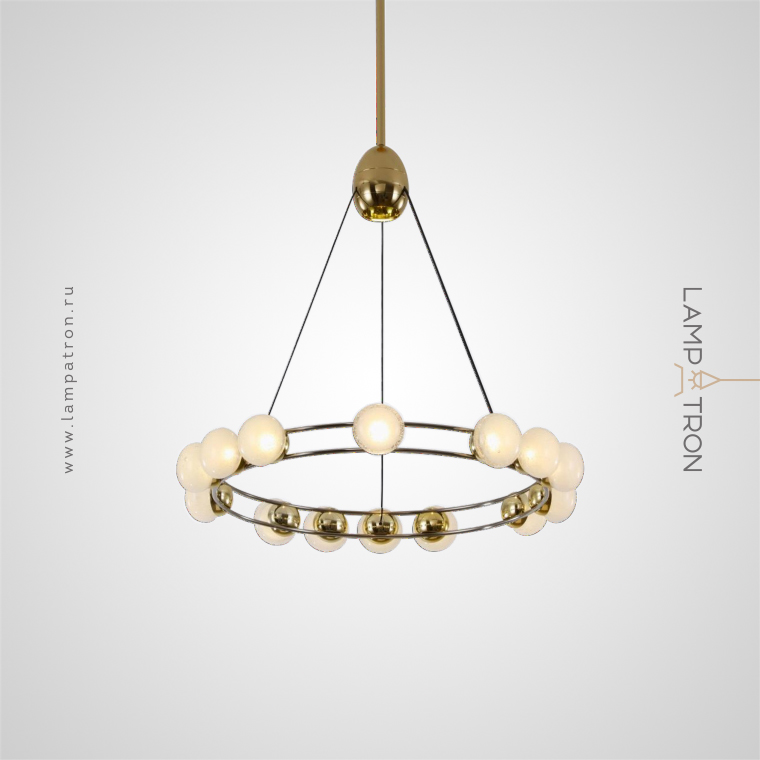 Ring chandelier with hand-domed glass diffusers with bubble effect and additional light source in the center