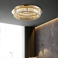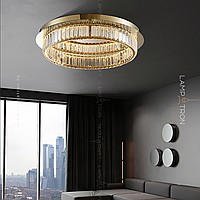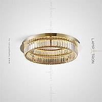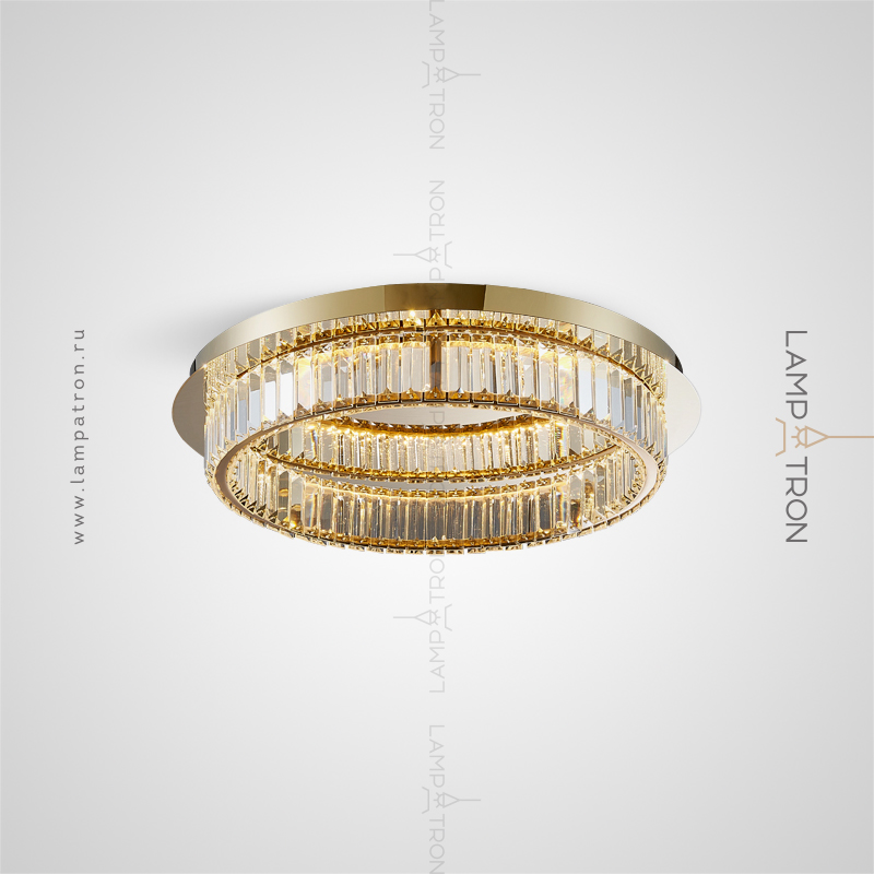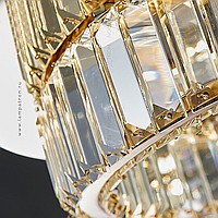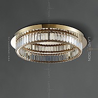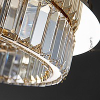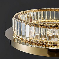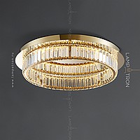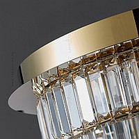 LED ceiling chandelier with transparent rectangular crystal diffusers on a disc-shaped base