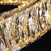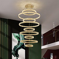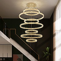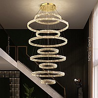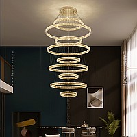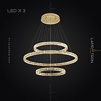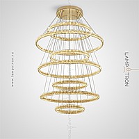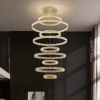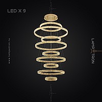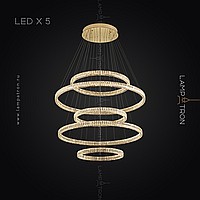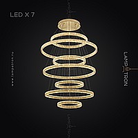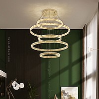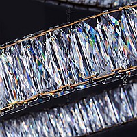 A series of LED chandeliers in the form of a combination of rings of different diameters with multifaceted rectangular crystal diffusers