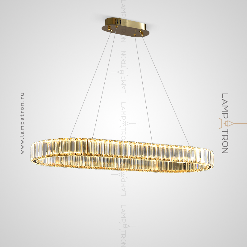 Rack and pinion LED luminaire with rectangular crystal diffusers on a looped housing