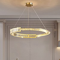 A series of ring LED chandeliers with an asymmetrical body made of rectangular crystal plates
