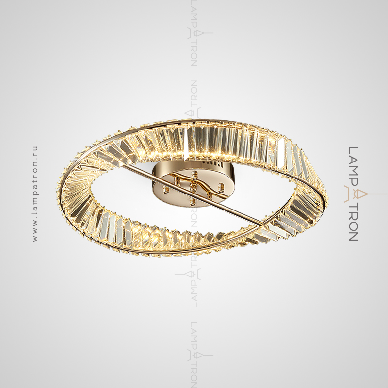 Ceiling LED chandelier with rectangular crystal diffusers on a ring case