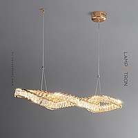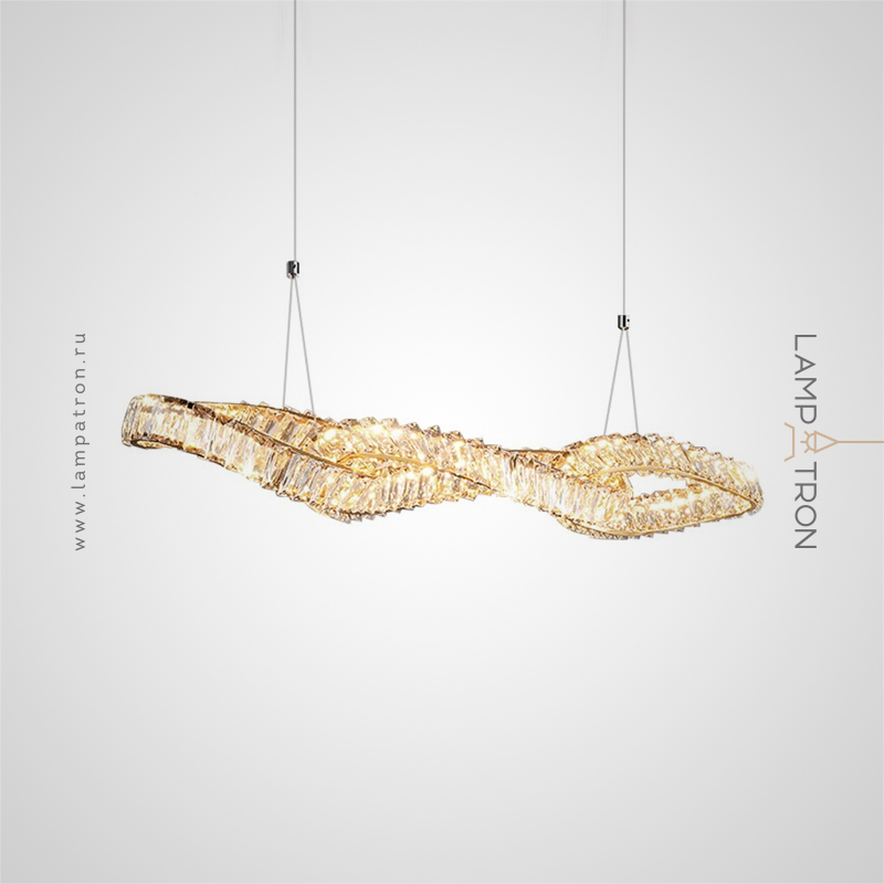 A series of in-line LED luminaires with multifaceted crystal diffusers on a spiral housing