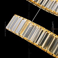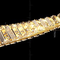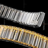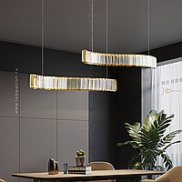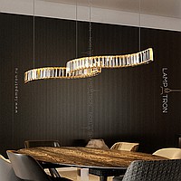 A series of slatted LED luminaires with rectangular crystal diffusers on a curved body