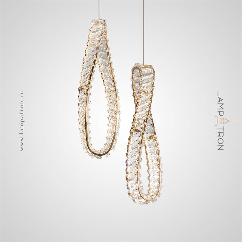 Pendant LED luminaire with rectangular crystal diffusers on a ring frame