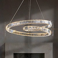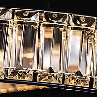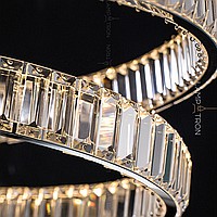 A series of ring LED chandeliers with transparent diffusers in the form of rectangular crystal plates
