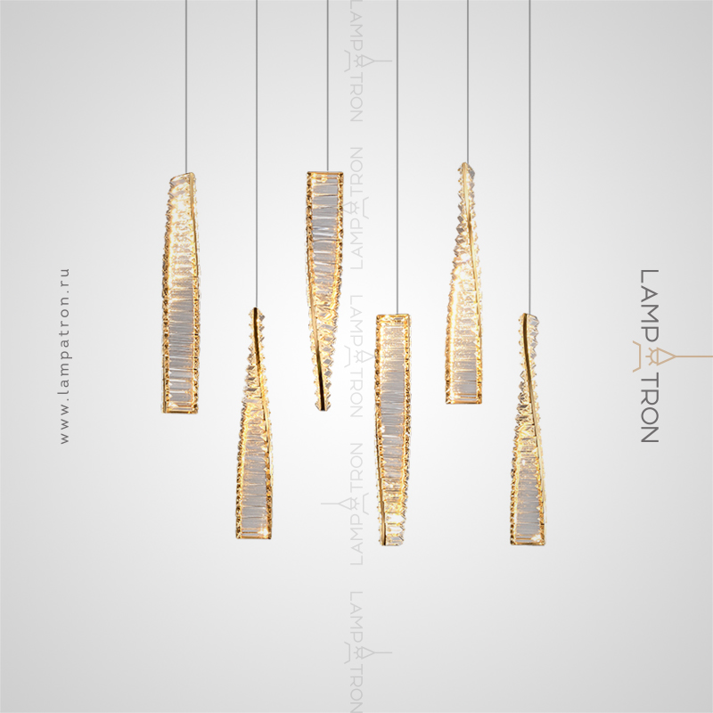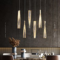 Ready-made combination of pendant LED luminaires with spiral shades made of multifaceted crystal plates